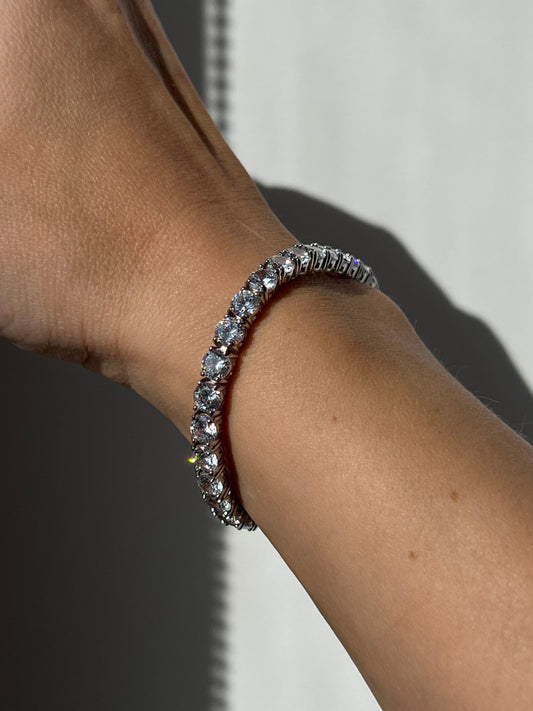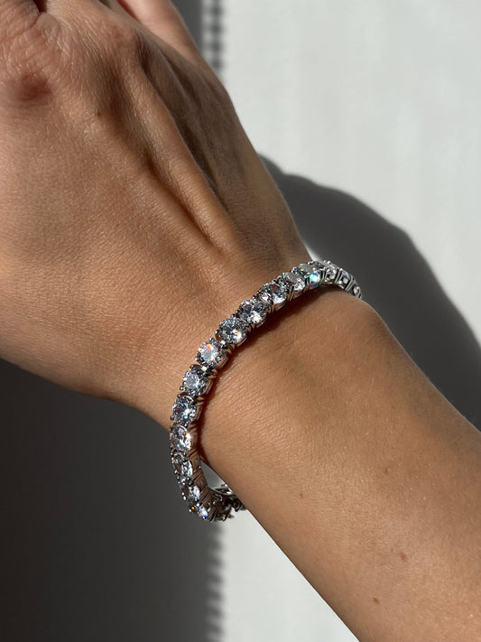 This week's featured product: a stunning silver tennis bracelet adorned with intricate details.