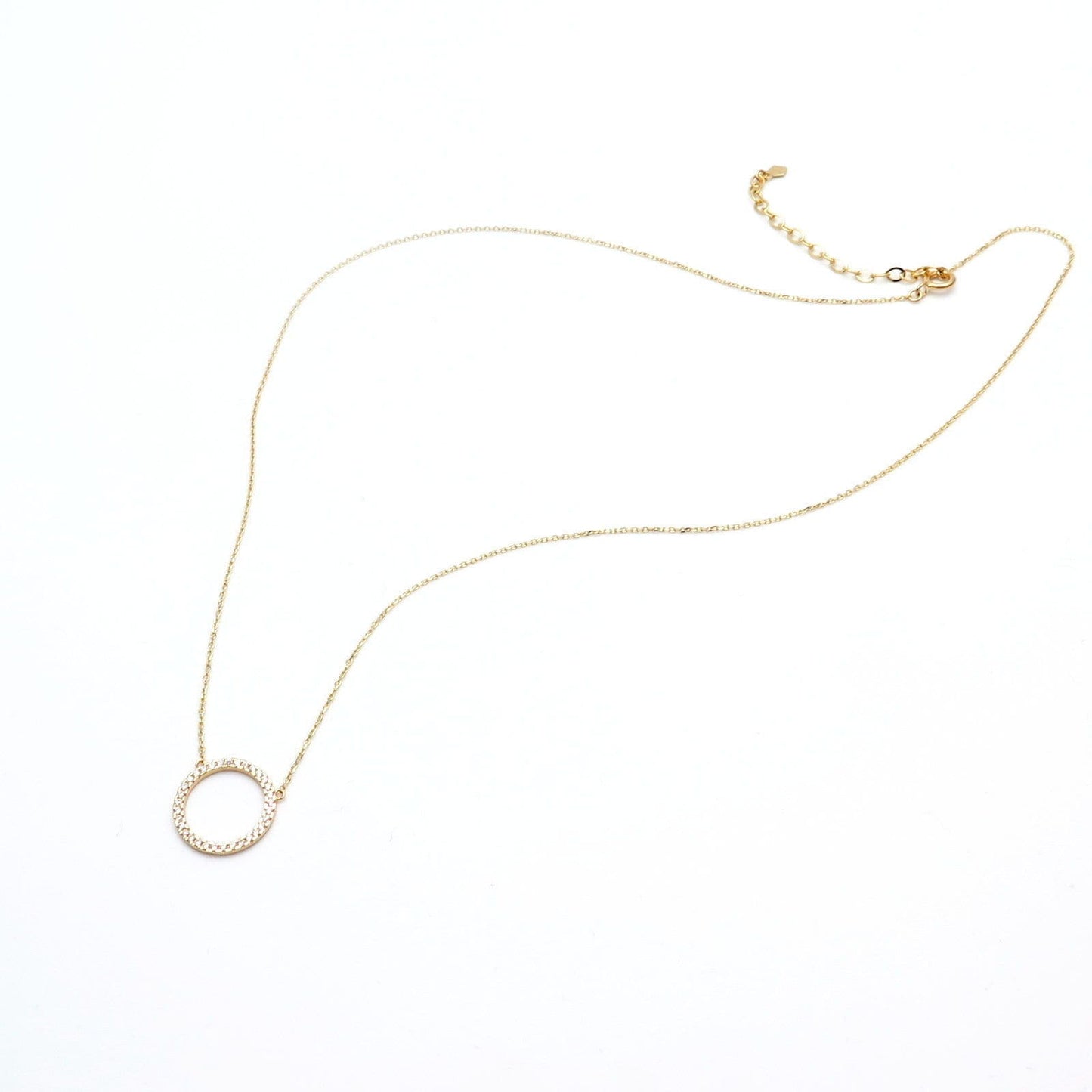 Brand new designer style 14k open circle of eternity pendant featuring 0.15 ct. brilliant round cut created diamond on 16"(extendable to 18") solid 14k rose gold cable chain necklace.