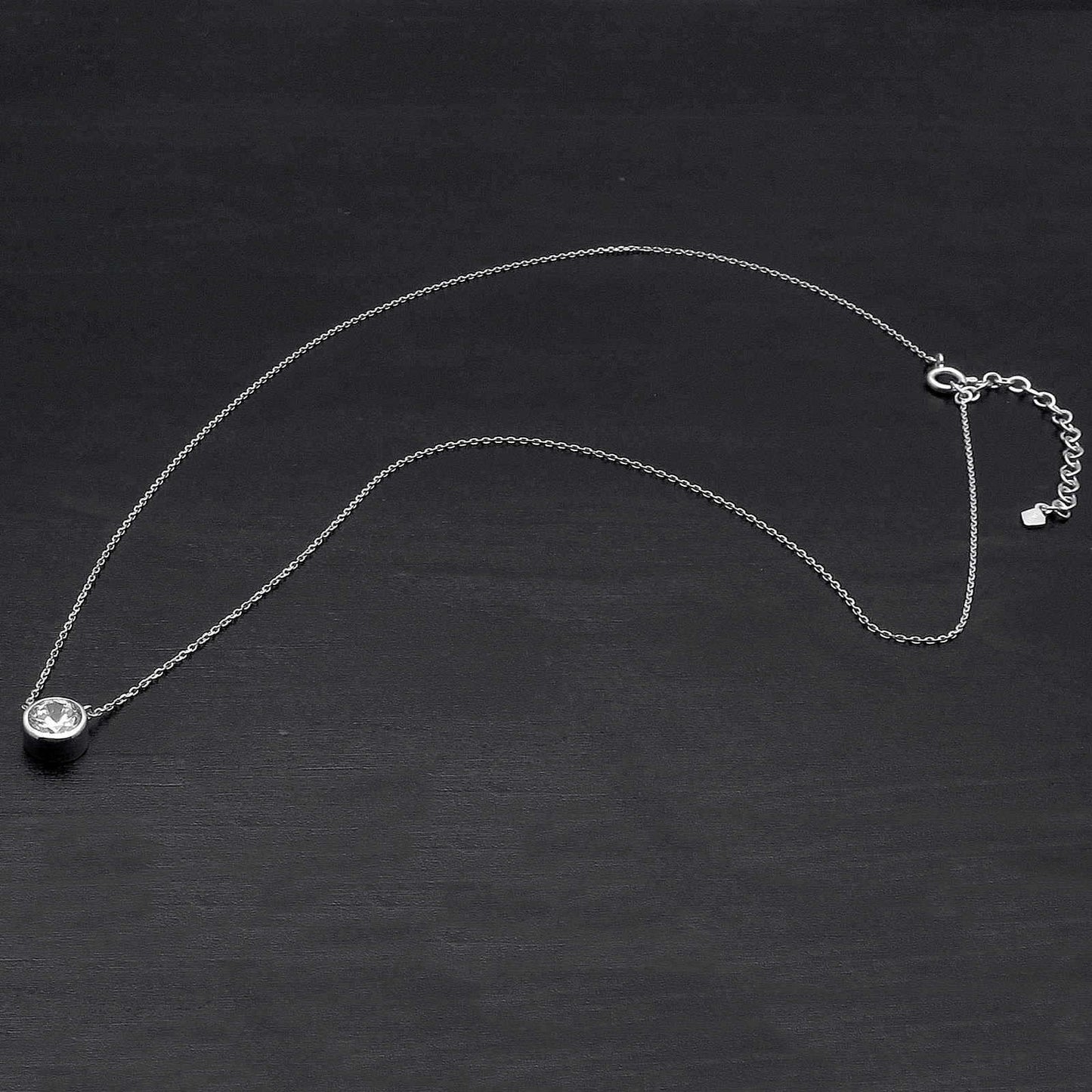 Bezel Necklace 2.00ct Brilliant Created Diamond 16" + 2" Chain Solid 14k Yellow Gold/ 14k While Gold 14K Rose Gold / Pendant Set